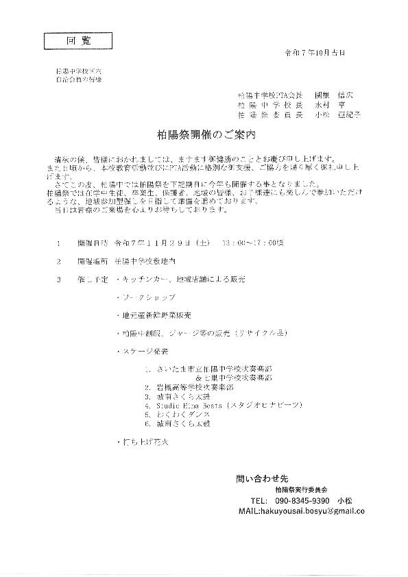 (3) 柏陽祭開催のご案内〔11/29(土)〕