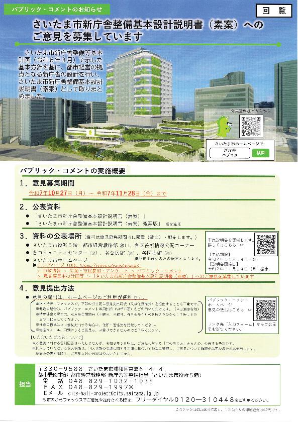 (5) パブリック・コメントのお知らせ さいたま市新庁舎整備基本設計説明書(素案)へのご意見を募集しています