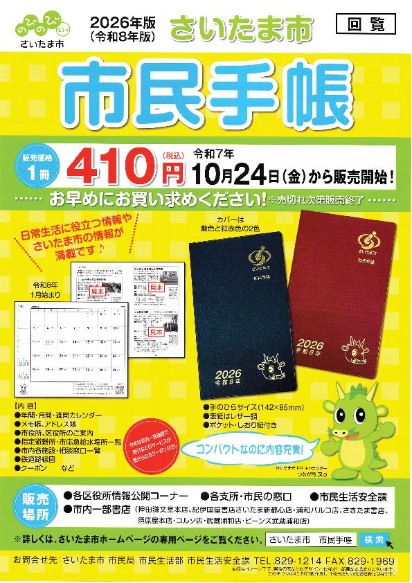 (8) 2026年版 さいたま市 市民手帳 10月24日(金)から販売開始