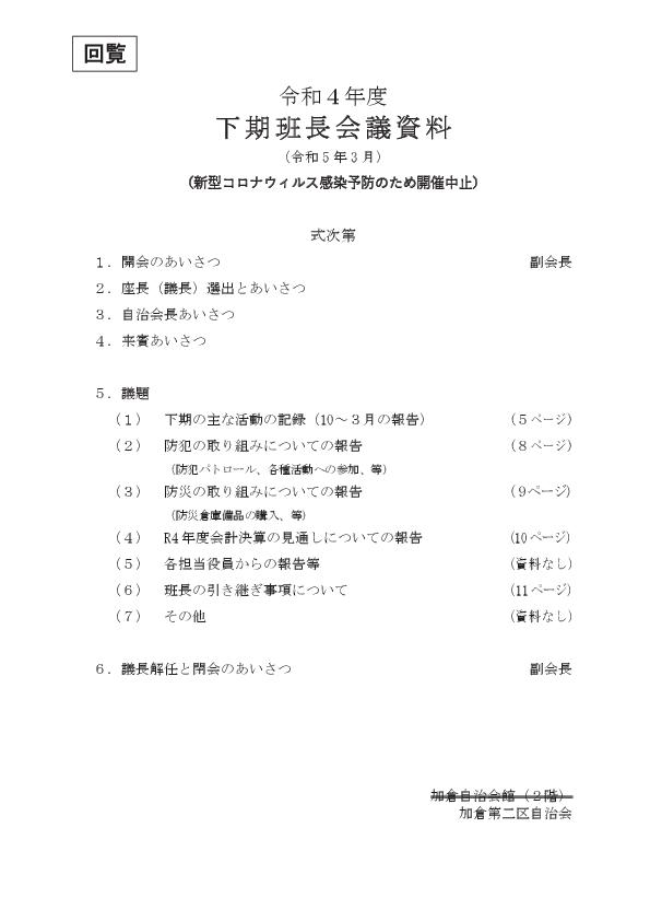 各班長の皆さんにはお手数をかけますが、班内回覧をよろしくお願いします。