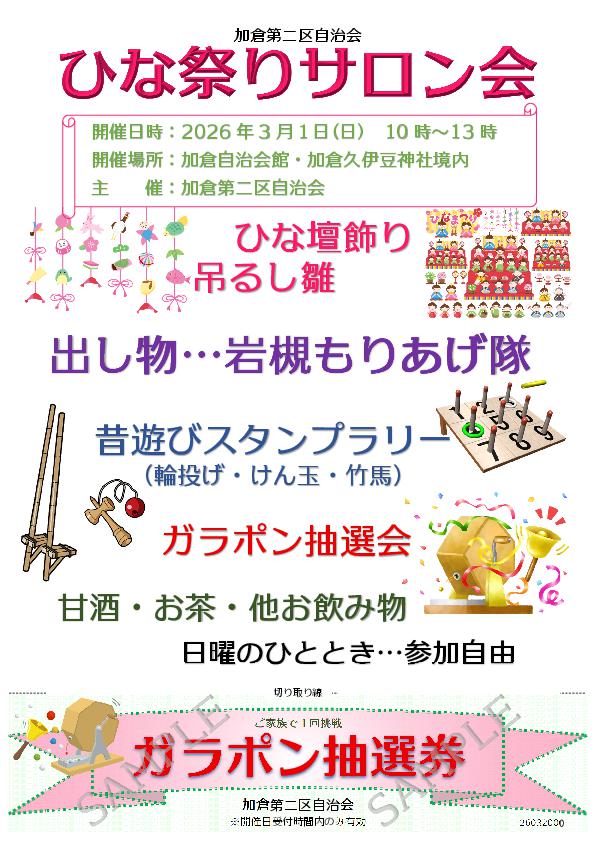 (1) ひな祭りサロン会〔3/1(日)・加倉自治会館〕